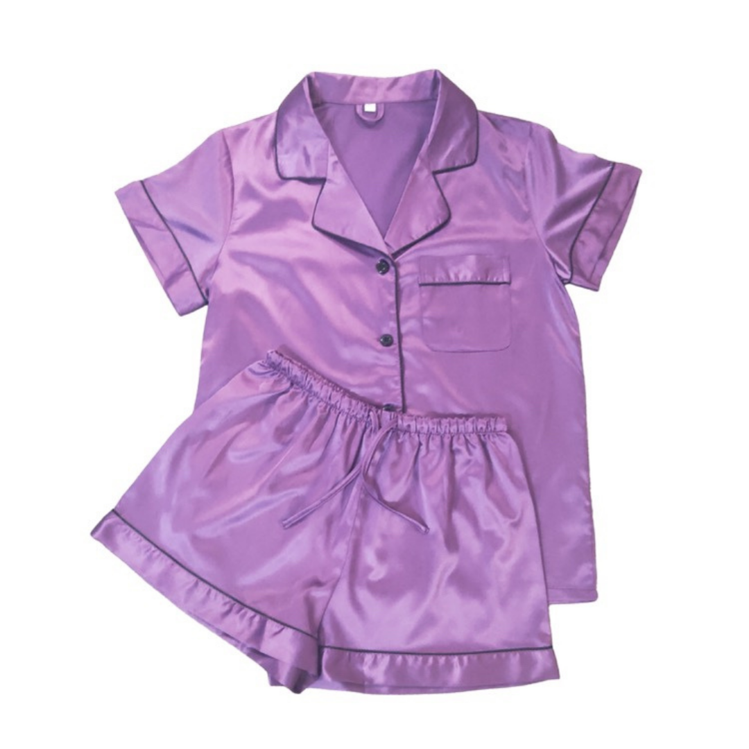 ADULT SATIN PYJAMAS - SHORT SLEEVE LAVENDER