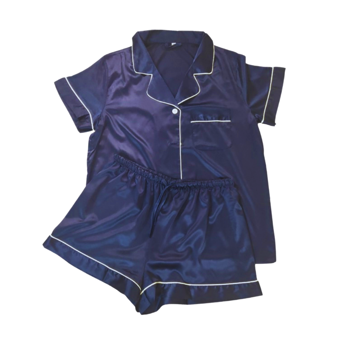 ADULT SATIN PYJAMAS - SHORT SLEEVE MIDNIGHT (Navy)